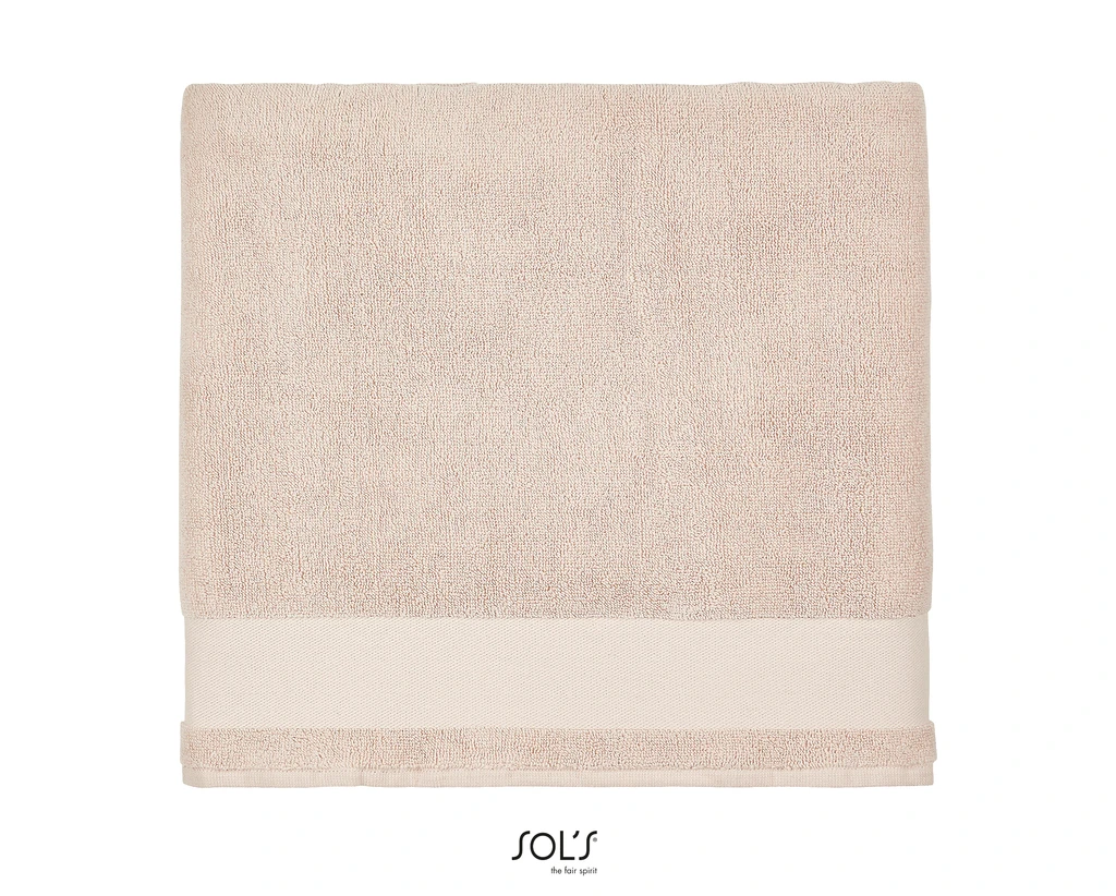 KVALITA: FRENCH TERRY 100% česaná bavlna; Měkká a nadýchaná osuška z francouzského froté, 2-vrstvé smyčky pro lepší savost, jemná bordura (šíře 6 cm) pro aplikaci loga, poutko na zavěšení; Rozměry: 100 x 150 cm; Certifikát: STANDARD 100 by OEKO-TEX®
