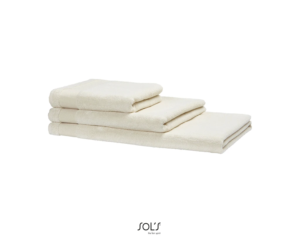 KVALITA: FRENCH TERRY 100% česaná bavlna; Měkká a nadýchaná osuška z francouzského froté, 2-vrstvé smyčky pro lepší savost, jemná bordura (šíře 6 cm) pro aplikaci loga, poutko na zavěšení; Rozměry: 100 x 150 cm; Certifikát: STANDARD 100 by OEKO-TEX®