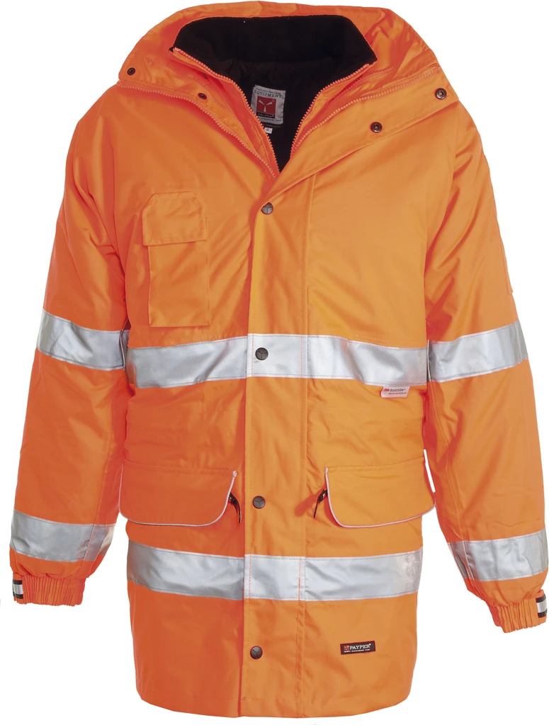 Vysoká viditelnost, 3M reflexní pruhy, vnější bunda bez vycpávky, plastový zip po celé délce, kovový jezdec, přes zip klopa s cvočky, vypasovaný střih, kapuce se stahovacími šňůrkami, elastické nastavitelné manžety, 2 přední prostorné kapsy s klopou a zipem, kapsa na mobilní telefon, tepelně lepené švy, odnímatelné rukávy, držák na jmenovku, na vnitřním límci mikrofleece