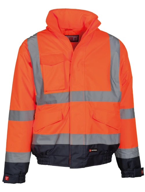Reflexní pásky, vysoká viditelnost, zip po celé délce, přes zip klopa, kapuci lze schovat do límce, elastický pas a manžety, 2 velké přední kapsy s klopou na suchý zip, kapsa na mobilní telefon, držák na jmenovku, vatová vycpávka, vnitřní kapsa na suchý zip, tepelně lepené švy
