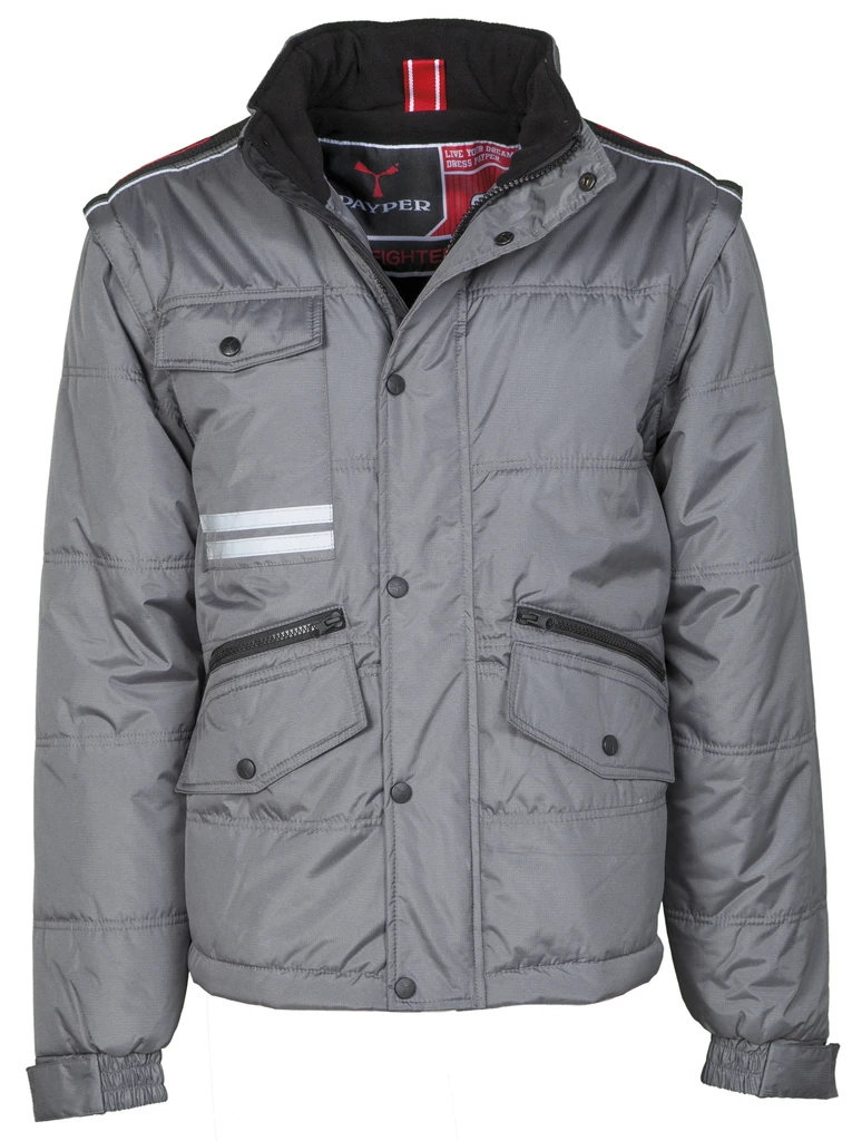 Odnímatelné rukávy, 8 mm široký plastový zip po celé délce, kovový jezdec, klopa po celé délce s plastovými knoflíky, 2 vnější kapsy se speciálním zavíracím systémem, 2 kapsy na zip, šikmé kapsy pro jednodušší přístup, kapsa na hrudi na mobilní telefon, reflexní proužky, vatová vycpávka, podšívka z fleecu v kontrastní barvě