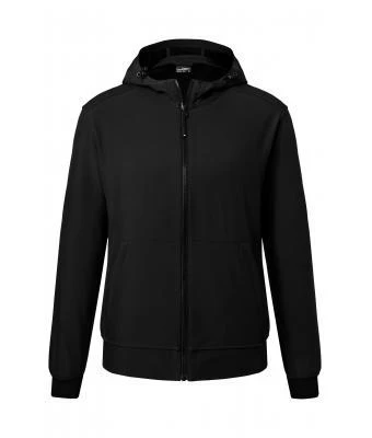 Kapuce se stahovací šňůrkou, dvouvrstvý softshell s kontrastní podšívkou ze síťoviny, elastický pas a manžety rukávů, odolnost vůči vodě a nečistotám díky BIONIC-FINISH®ECO, našitá klokaní kapsa na zip, vnitřní kapsa, zip YKK po celé délce.