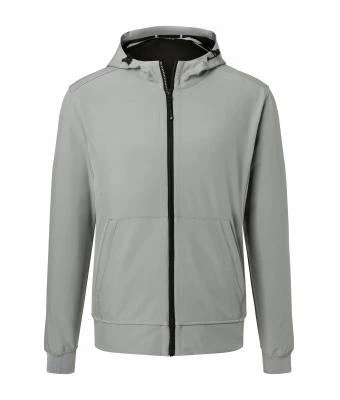 Kapuce se stahovací šňůrkou, dvouvrstvý softshell s kontrastní podšívkou ze síťoviny, elastický pas a manžety rukávů, odolnost vůči vodě a nečistotám díky BIONIC-FINISH®ECO, našitá klokaní kapsa na zip, vnitřní kapsa, zip YKK po celé délce.