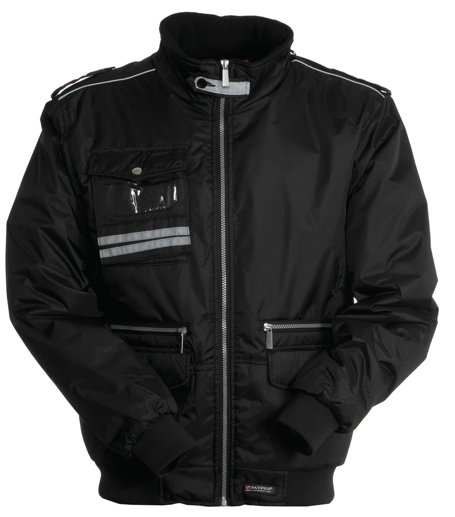 Plastový zip po celé délce, kovový jezdec, kapuce schovaná v límci, žebrované manžety a spodní lem, 2 kapsy se speciálním zavíracím systémem, 2 kapsy na zip, 1 průhledná kapsa, vnitřní kapsa, reflexní lemování na ramenou, 2 reflexní proužky na hrudi, vatová vycpávka, podšívka ve stříbrné barvě, podšívka na límci a zádech z fleecu