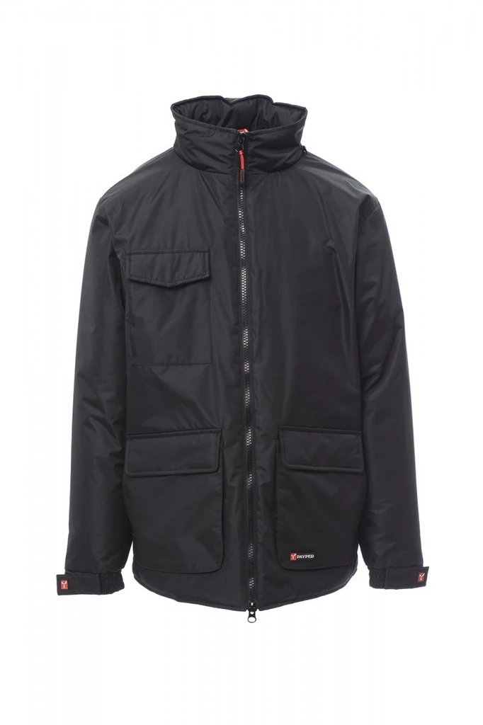 Lehká bunda ve 3/4 délce, plastový zip (8mm) s kovovým jezdcem, kapuce v límci, elastické konce rukávů s nastavitelnými páskami v oblasti zápěstí, dvě velké přední kapsy "LOCK SYSTEM", dvě postranní kapsy, jedna kapsa na hrudi na mobilní telefon. Vnitřní strana zateplená, zip pro snadnější potisk a vyšívání