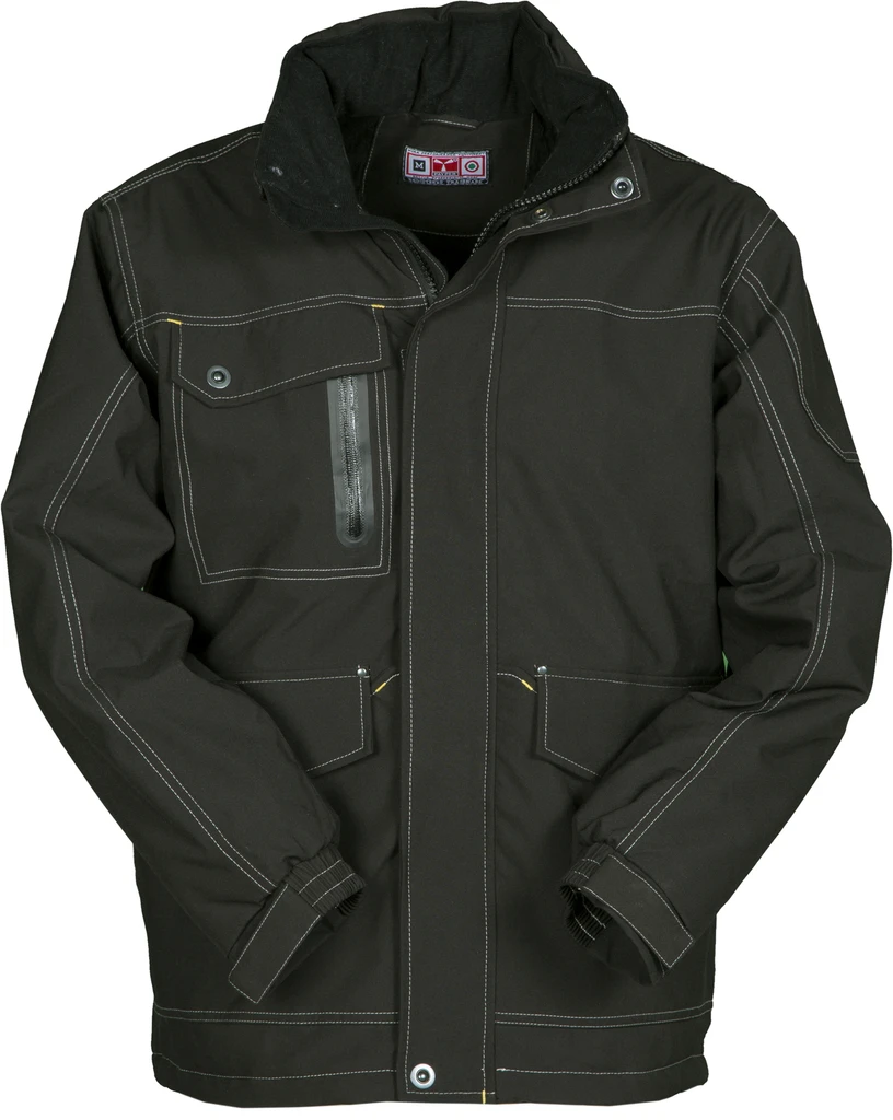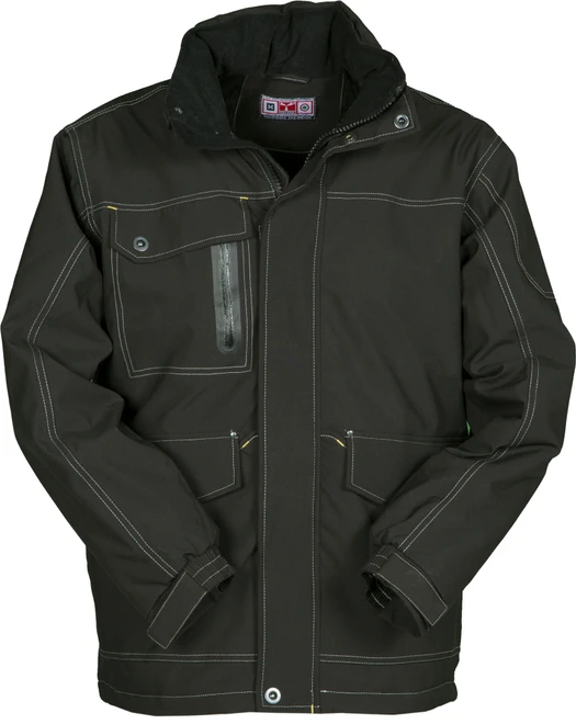 8 mm plastový zip po celé délce, klopa po celé délce na suchý zip, svařené švy, kapuce schovaná v límci, nastavitelné manžety, 4 přední prostorné kapsy - 2 s klopou a na zip, 2 na hrudi, kontrastní prošití v šedém odstínu, vatová vycpávka, podšívka z polyesteru