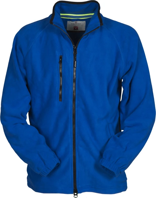 Černý plastový zip 8 mm široký, raglánové rukávy, stahovací šňůrka v pase, elastické manžety, 2 kapsy se skrytým zipem, 1 přední kapsa na hrudi, za krkem výztužná páska v kontrastní barvě, vyztužené švy