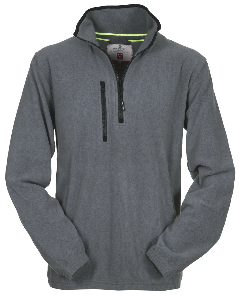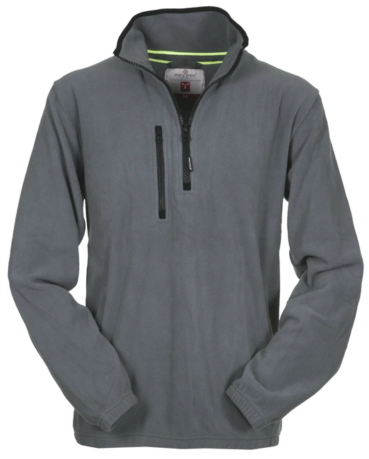 Do 1/2 délky černý plastový zip 8 mm široký, raglánové rukávy, elastické manžety a pas, 2 kapsy se skrytým zipem, 1 přední kapsa na hrudi, za krkem výztužná páska v kontrastní barvě, vyztužené švy