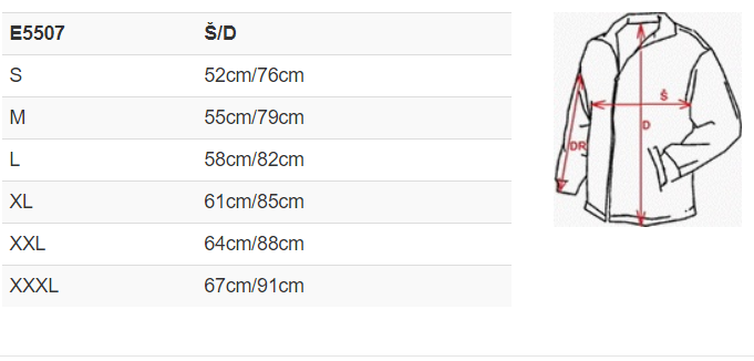 | Velikost | S, M, L, XL, 2XL, 3XL |