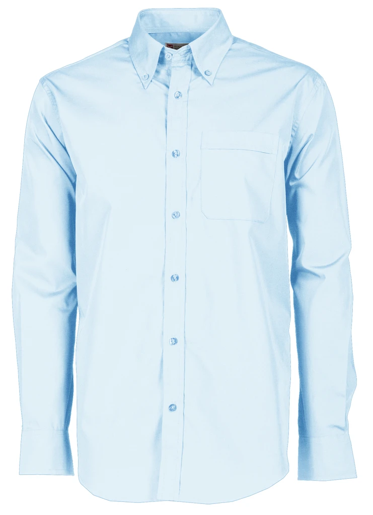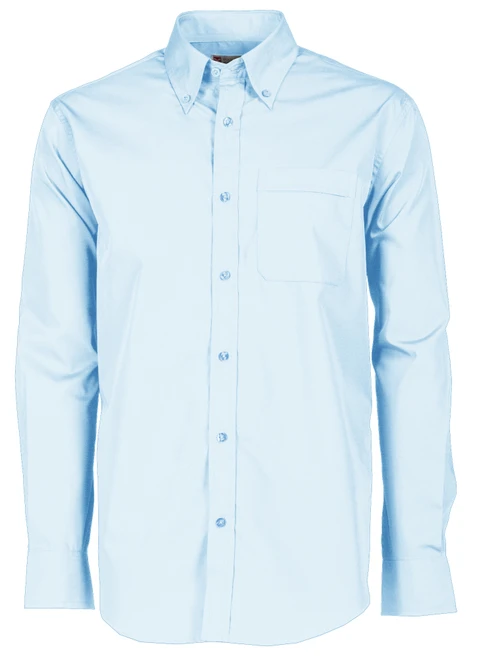 Mírně zeštíhlená, dlouhý rukáv, anglický límec s knoflíky, zaoblené manžety s 2 knoflíky a knoflíkovou dírkou, náprsní kapsa, prošitá léga s perleťovými knoflíčky