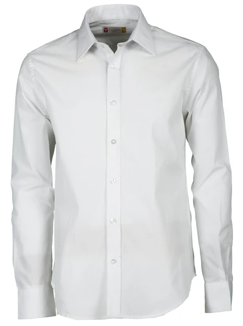 Dlouhý rukáv, mírně vyštíhlená, italský límeček, manžety s 2 knoflíky a knoflíkovou dírkou, oboustranně prošitá léga s barevně sladěnými knoflíky, náprsní kapsa, zádové sedlo a svislé záševky