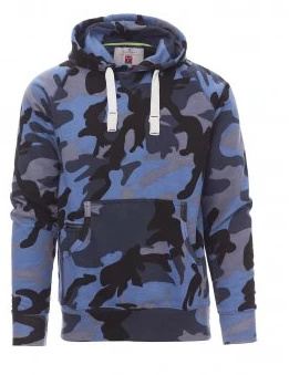 Dvojité švy, kapuce, kovová očka na kapuci, bílá stahovací šňůrka, raglánové rukávy, dekorativní prošití do "V" pod výstřihem, klokaní kapsa, malá kapsa na zip, elastické manžety a spodní lem, vyztužené švy