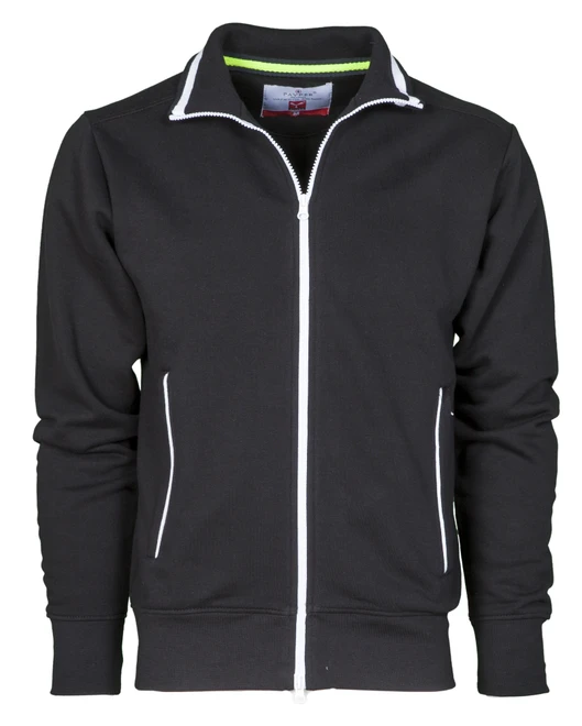 Plastový kontrastní zip po celé délce, dvojcestný kovový jezdec, kontrastní zip na žebrovaném límci a kapsách na zip, vsazené rukávy, vyztužené švy, elastické manžety a spodní lem