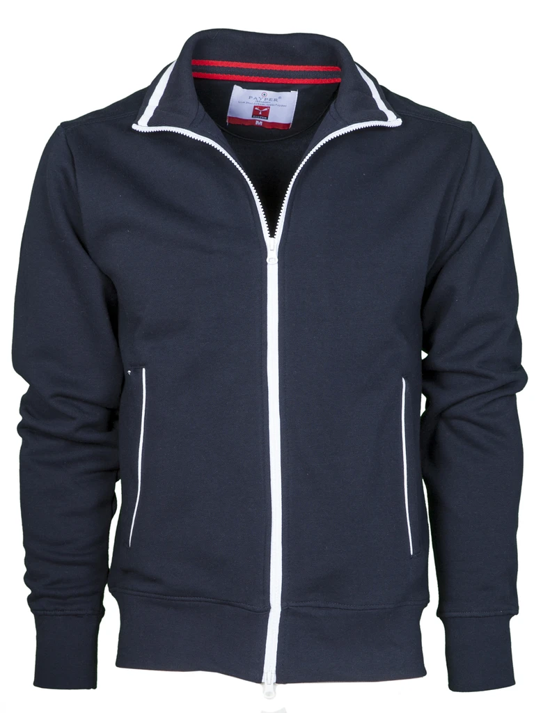 Plastový kontrastní zip po celé délce, dvojcestný kovový jezdec, kontrastní zip na žebrovaném límci a kapsách na zip, vsazené rukávy, vyztužené švy, elastické manžety a spodní lem