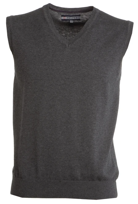 Výstřih do "V", žebrování kolem výstřihu, průramků a na spodním lemu, bez bočních švů