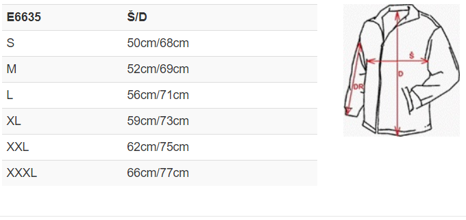 Dlouhý rukáv, zapínáním na 3 knoflíčky, límec a lemování rukávů v žebrovaném úpletu, zpevněné skryté švy na průkrčníku, boční rozparky, odnímatelná cedulka, Duo koncept (dostupná varianta pro ženy), materiál na kapsu k dispozici.