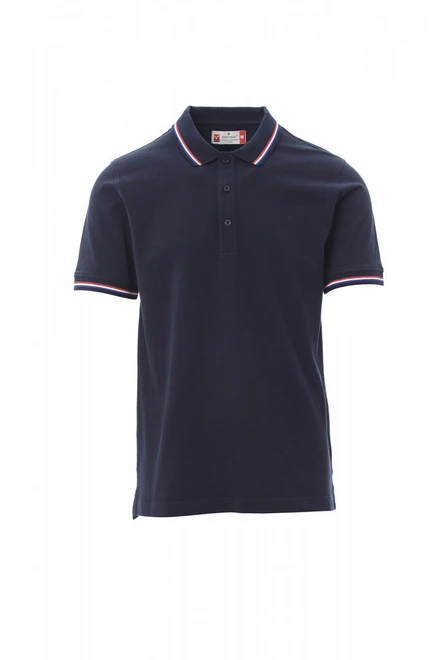 Unisexová piké polokošile s krátkým rukávem se 3 bílými knoflíky, kontrastní lemování u krku a na rukávech v barvě italské trikolóry, žebrovaný lem u krku a na rukávech, postranní rozparky se zesílenými švy, skryté prošití límečku, postranní vyztužovací páska, pružné švy, tvarovaná výztuž na spodní straně límečku