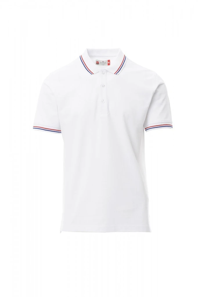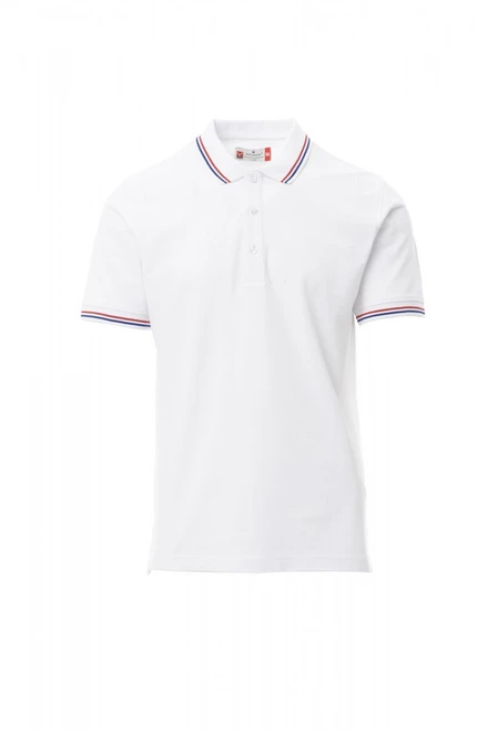Unisexová piké polokošile s krátkým rukávem se 3 bílými knoflíky, kontrastní lemování u krku a na rukávech v barvě italské trikolóry, žebrovaný lem u krku a na rukávech, postranní rozparky se zesílenými švy, skryté prošití límečku, postranní vyztužovací páska, pružné švy, tvarovaná výztuž na spodní straně límečku