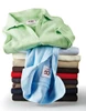 Lze prát na 95°C, klasický střih, krátký rukáv, úpletový límeček, dvojité švy, náplety na rukávech, boční rozparky zatavené, 3 knoflíky přišité křížem, předepraná.