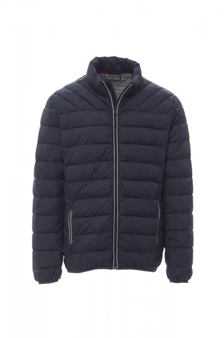 Lehká větrovka, zapínání na plastový zip (5mm) s kovovým jezdcem. Úzký elastický lem na manžetách a v pase, dvě vnější kapsy. Vnitřní strana zateplená výplní z polyesteru (efekt péřové náplně), dvě kapsy