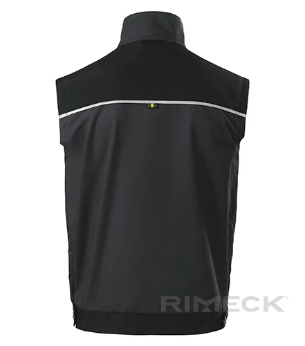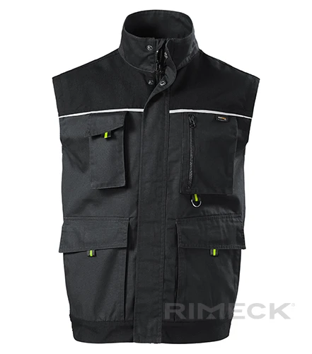 Retroreflexní páska na předním i zadním dílu, multifunkční kapsy, poutko na zavěšení, v boční části dolního kraje možnost nastavení šíře obvodu - na 3 cvočky, CORDURA® použita v kontrastní barvě, prát na 40°C.