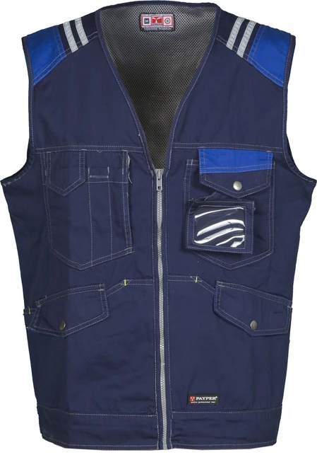 V džínovém stylu, vypasovaný střih, přední zapínání na zip, 2 přední klokaní kapsy se speciálním zavíracím systémem na klopu a knoflík, 2 náprsní kapsy, odnímatelná jmenovka, držák na mobilní telefon, reflexní lemování na zádech, reflexní proužky na ramenou, rychleschnoucí podšívka
