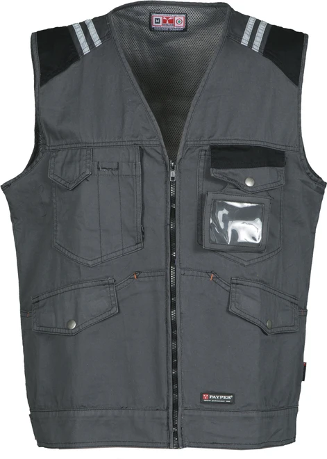 V džínovém stylu, vypasovaný střih, přední zapínání na zip, 2 přední klokaní kapsy se speciálním zavíracím systémem na klopu a knoflík, 2 náprsní kapsy, odnímatelná jmenovka, držák na mobilní telefon, reflexní lemování na zádech, reflexní proužky na ramenou, rychleschnoucí podšívka.