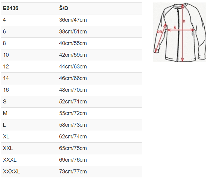 | Velikost | S, M, L, XL, 2XL, 3XL |