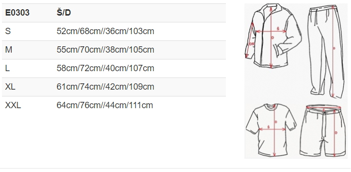 | Velikost | S, M, L, XL, 2XL |