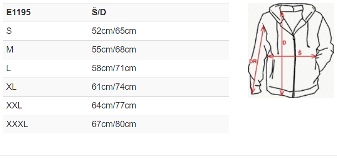 | Velikost | S, M, L, XL, 2XL, 3XL |