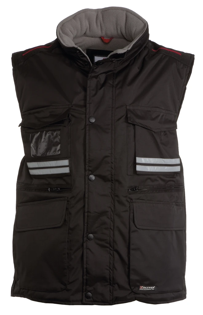 8 mm široký plastový zip po celé délce, kovový jezdec, klopa s cvoky po celé délce, odepínací kapuce, nastavitelné manžety, reflexní proužky vpředu i vzadu, boční ventilační otvory na zip, 9 vnějších kapes - 2 se speciálním zavíracím systémem, 2 na zip a s vyztuženým vnitřkem, 1 kapsa průhledná, vatová vycpávka, podšívka na límci z microfleecu
