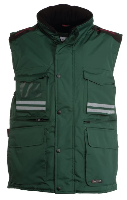 8 mm široký plastový zip po celé délce, kovový jezdec, klopa s cvoky po celé délce, odepínací kapuce, nastavitelné manžety, reflexní proužky vpředu i vzadu, boční ventilační otvory na zip, 9 vnějších kapes - 2 se speciálním zavíracím systémem, 2 na zip a s vyztuženým vnitřkem, 1 kapsa průhledná, vatová vycpávka, podšívka na límci z microfleecu