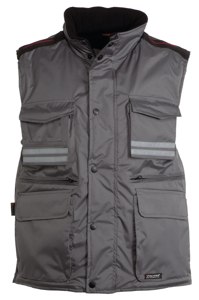 8 mm široký plastový zip po celé délce, kovový jezdec, klopa s cvoky po celé délce, odepínací kapuce, nastavitelné manžety, reflexní proužky vpředu i vzadu, boční ventilační otvory na zip, 9 vnějších kapes - 2 se speciálním zavíracím systémem, 2 na zip a s vyztuženým vnitřkem, 1 kapsa průhledná, vatová vycpávka, podšívka na límci z microfleecu