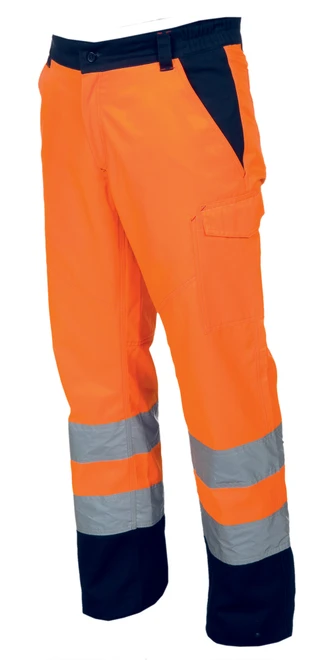 Vysoká viditelnost, vhodné pro všechna roční období, reflexní pruhy, elastické boky, poutka na pásek, zapínání na zip a knoflík, 2 přední kapsy, boční kapsa, kapsa na metr, 2 zadní kapsy (1 otevřená, 1 s klopou na suchý zip), kontrastní prošití, trojité švy v rozkroku a na vnitřní nohavici