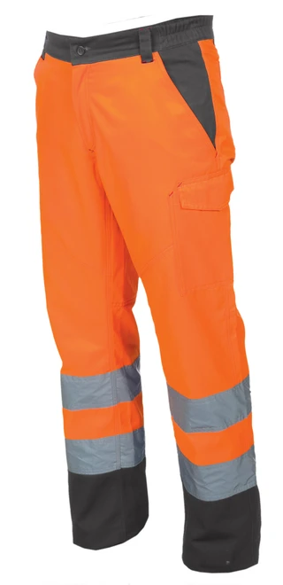 Vysoká viditelnost, vhodné pro všechna roční období, reflexní pruhy, elastické boky, poutka na pásek, zapínání na zip a knoflík, 2 přední kapsy, boční kapsa, kapsa na metr, 2 zadní kapsy (1 otevřená, 1 s klopou na suchý zip), kontrastní prošití, trojité švy v rozkroku a na vnitřní nohavici
