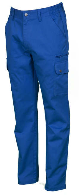Vhodné na všechny roční období, elastické řasení na bocích, poutka na pásek, zapínání na zip a knoflík, 2 přední kapsy, 2 boční kapsy s klopou, na levé nohavici kapsa na zip, 2 zadní kapsy na knoflík