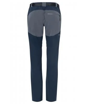 Neformální vzhled, lehká pevná a bi-elastická tkanina, odolnost vůči vodě a nečistotám díky BIONIC-FINISH®ECO, rychleschnoucí, částečně elastický pas s poutky na pásek, kontrastní vložky na kolenou a na zadní části, 2 boční kapsy, zadní kapsa, kapsa na nohavici, všechny kapsy na zip.