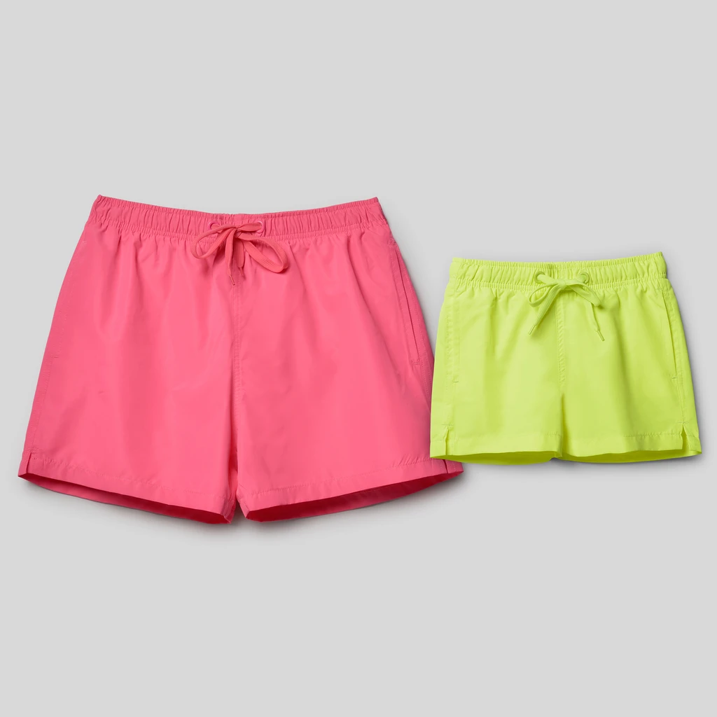 2 boční kapsy, uvnitř síťovina, nastavitelná stahovací šňůrka v pase, zadní kapsa, postranní rozparky, zesílené švy ve stejném tónu, vhodné pro potisk sublimací, dostupné velikosti i pro děti.