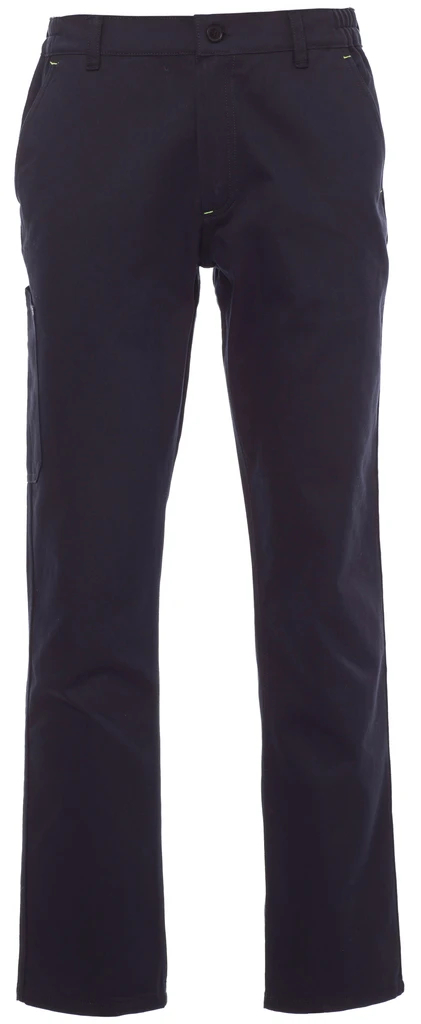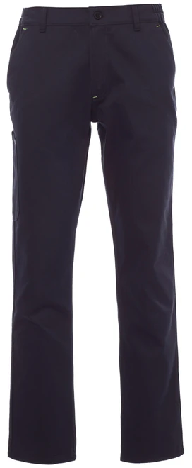 Poutka na opasek, elastický pas, zapínání na zip a knoflíky, dvojité švy na rozkroku a vnitřní nohavici, 2 klasické přední kapsy, kapsa na metr na pravém boku, zadní kapsa s klopou a suchým zipem