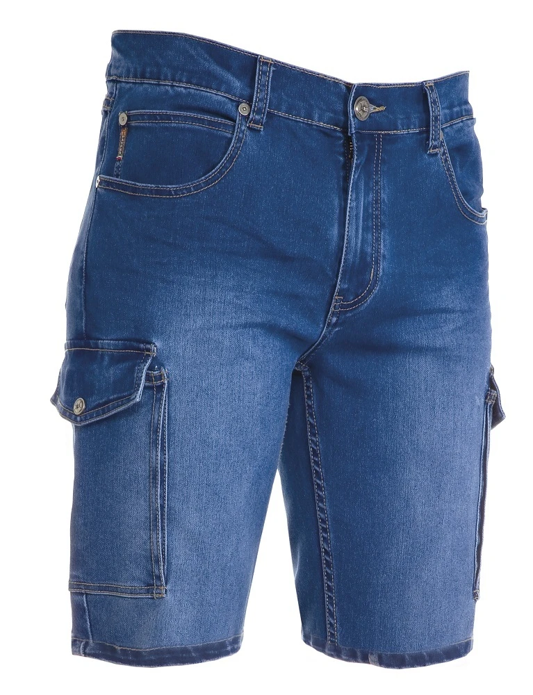 5 kapes, 2 velké kapsy na bocích s klopou, zapínání na kovový zip a knoflík, poutka na pásek, nošený vybledlý vzhled, kontrastní švy, dvojité švy na vnitřní straně nohavic