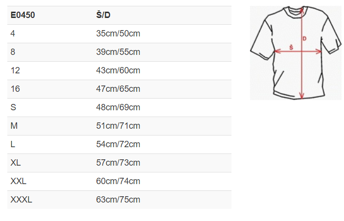 | Velikost | S, M, L, XL, 2XL, 3XL |