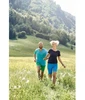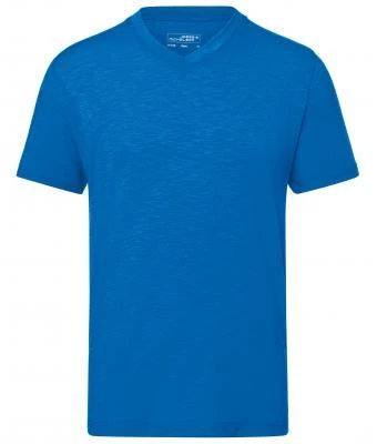 Funkční materiál vhodný pro volný čas a sport, prodyšný rychleschnoucí a vlhkost regulující materiál, elastický jednoduchý úplet, výztužná páska za krkem, výstřih do "V".