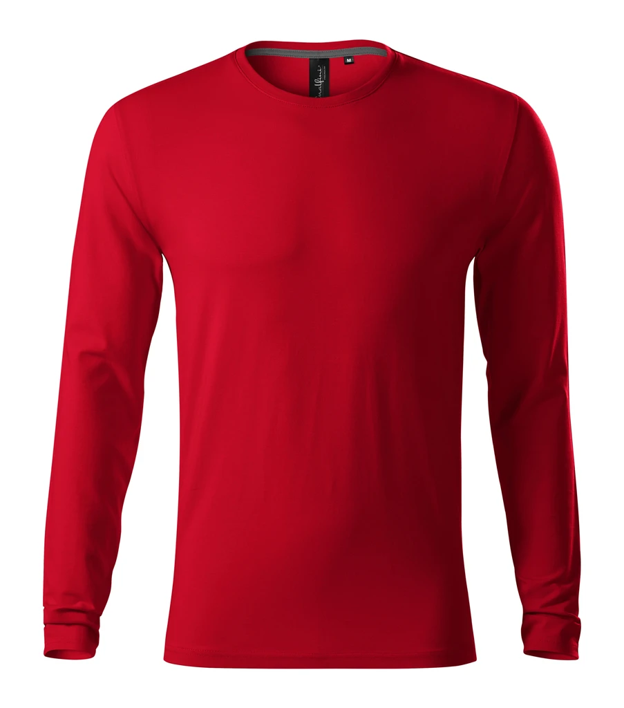 Dlouhý rukáv, triko skvěle drží tvar díky přídavku 5% elastanu, přiléhavý střih s bočními švy, úzký lem průkrčníku z žebrového úpletu 1:1 s 5% elastanu, zpevnění ramenních švů páskou, vnitřní část průkrčníku začištěna kontrastní páskou.