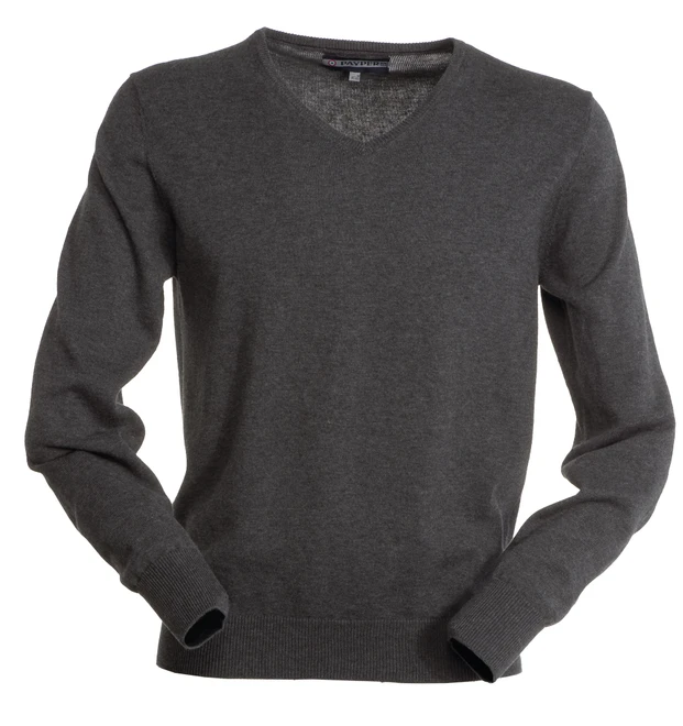Výstřih do "V", žebrování kolem výstřihu, na manžetách a spodním lemu, bez bočních švů