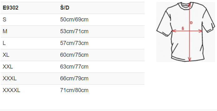 | Velikost | S, M, L, XL, 2XL, 3XL |