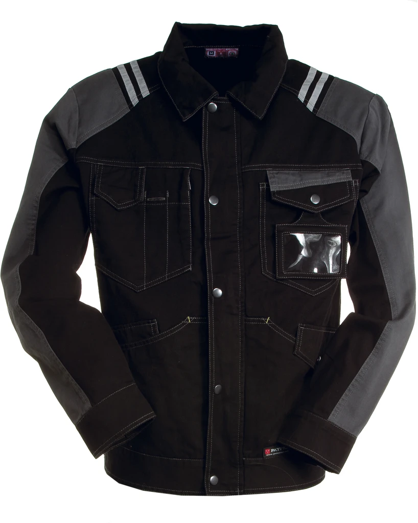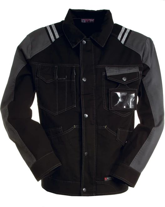 V džínovém stylu, kontrastní vsadky a prošití, přední zapínání na zip s klopou na cvočky, vypasovaný střih, nastavitelné manžety, nastavitelný pas na cvoček, 2 klokaní kapsy se speciálním zavíracím systémem, 2 náprsní kapsy, odnímatelná jmenovka, reflexní lemování na zádech, reflexní proužky na ramenou