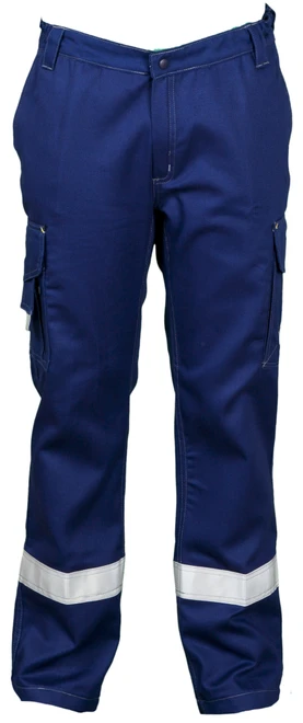 Antistatické, antacidové, nehořlavé kalhoty odolné proti elektrickému oblouku vhodné pro svářeče, se dvěma reflexními pruhy, vyšší pas v zadní části pro lepší krytí s elastickými boky a poutky na opasek v pase; přední zapínání na zip a druky. Kontrastní vyztužené dvojité švy na vnitřní noze, vnější noze a zádech. Přední kapsy klasického střihu, dvě multifunkční kapsy plus kapsa na zip a dvě zadní kapsy, vše s klopou a zapínáním na suchý zip. Reflexní pruhy 3M na zadní kapse