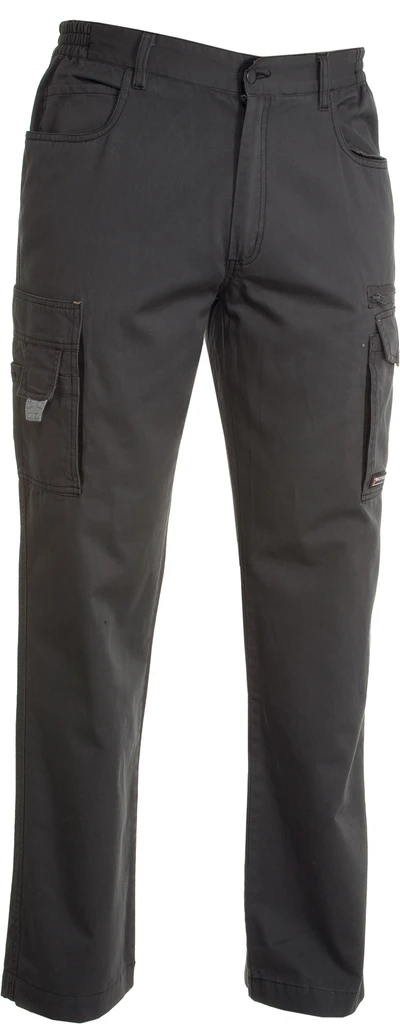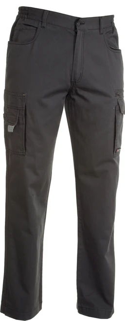 Unisex střih, zapínání na zip a kovový knoflík, poutka na pásek, elastické boky, 3 přední kapsy v džínovém stylu, 1 boční kapsa se speciálním zavíracím systémem, 1 boční kapsa na zip, 1 multifunkční kapsa, 2 zadní kapsy (1 s klopou na suchý zip), kontrastní vsadky, reflexní pásky na zadních kapsách