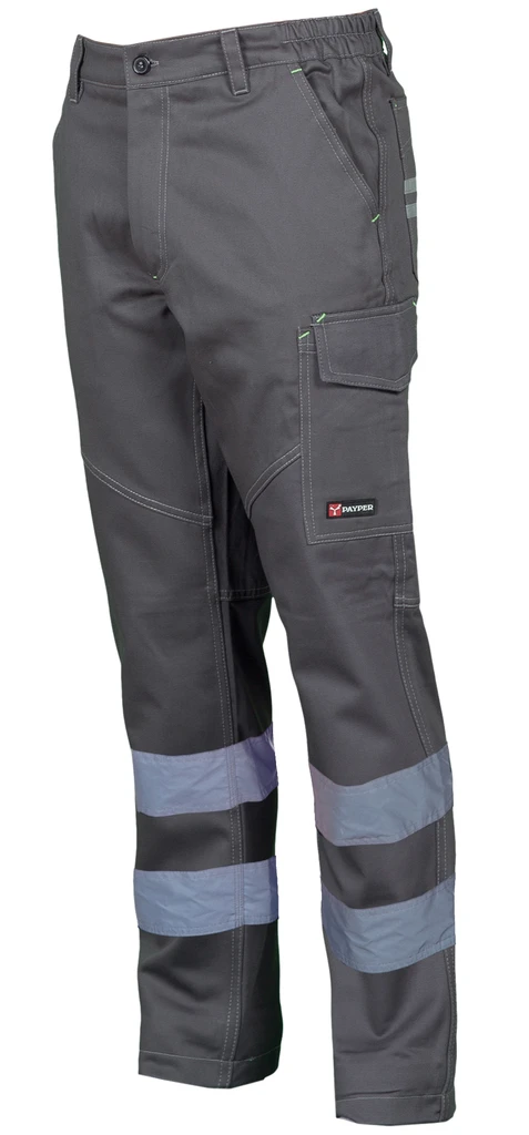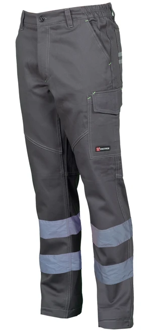 Unisex střih, zapínání na zip a plastový knoflík, poutka na pásek, elastické boky, 2 klasické přední kapsy, 1 boční kapsa se speciálním zavíracím systémem, 2 zadní kapsy (1 s klopou na suchý zip), trojité švy, kontrastní vsadky a švy, reflexní pásky na nohavicích, reflexní pásky na zadní kapse
