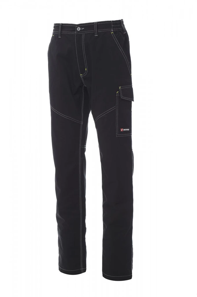 Unisex střih, vhodné na léto, zapínání na zip a plastový knoflík, poutka na pásek, elastické boky, 2 klasické přední kapsy, levá boční kapsa se speciálním zavíracím systémem, pravá boční kapsa na metr, 2 zadní kapsy (1 s klopou na suchý zip), trojité švy, kontrastní vsadky a švy, reflexní pásky na zadní kapse